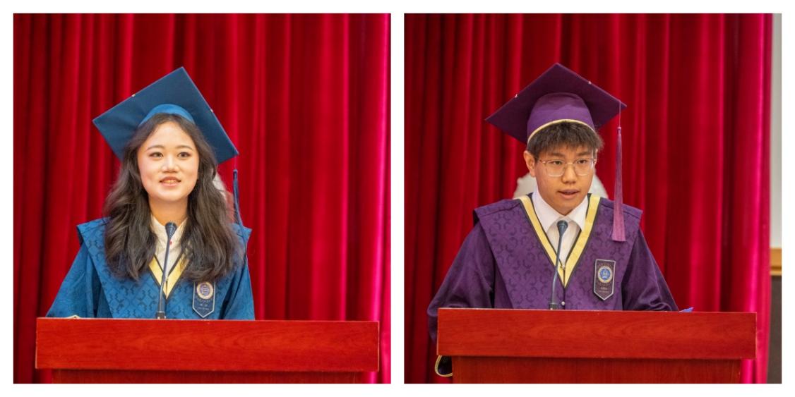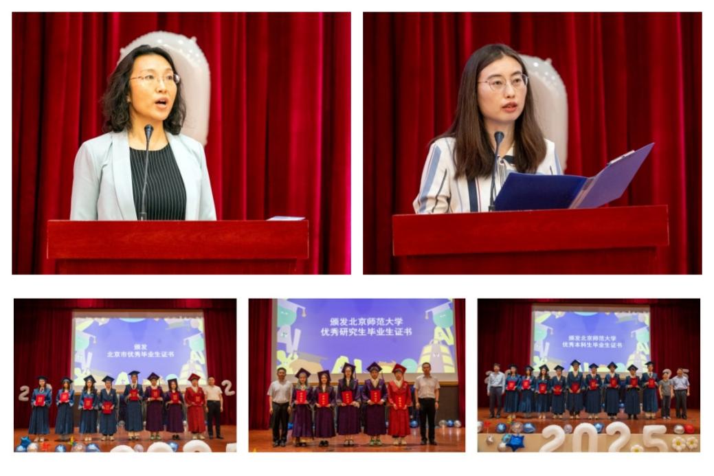 在毕业生代表发言环节,本科生徐洋同学和研究生李奥奇同学分别上台发言。他们回顾了在学院度过的难忘的求学时光,表达了对母校的眷恋和对未来的憧憬。字里行间流露的感恩与惜别之情,生动诠释了北师大青青草视频 学子的青春朝气和进取精神。