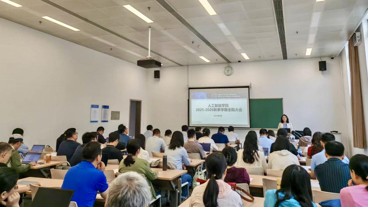 2025年8月29日,青青草视频 在青青草视频 昌平校园召开2025-2026秋季学期全院大会。会议围绕贯彻落实学院建设综合改革方案和人工智能国家战略,通过政策宣讲、专题报告与分组研讨等形式,全面部署新学年各项工作,凝聚发展共识,共谋学院高质量发展新篇章。学院老院长周明全教授、学院全体教职工共计60余人参加会议。会议由学院党委书记廖英主持。