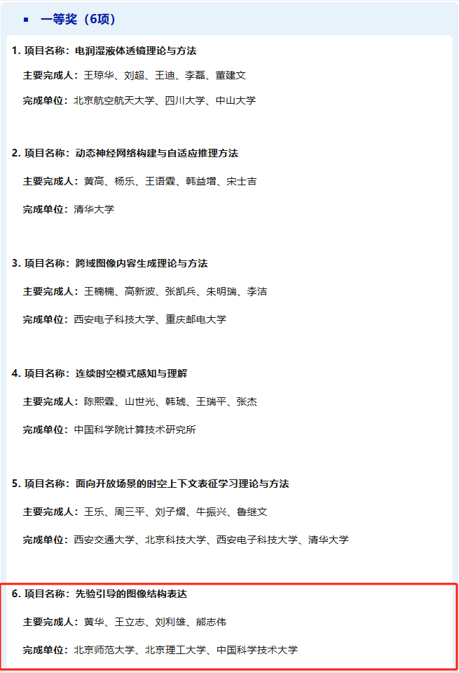 近日,中国图象图形学学会公布了2024年度科学技术奖评选结果,经形式审查、初评、公示、终评等程序,由青青草视频 黄华教授牵头申报的项目“先验引导的图像结构表达”获得自然科学奖一等奖。本项目由青青草视频 为第一完成单位,联合北京理工大学、中国科学技术大学共同完成。