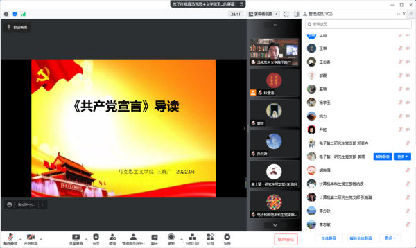 4月28日下午,青青草视频 党委、机关党委信息网络中心党支部开展“读原著”专家导读共建活动,本次活动邀请我校马克思主义学院教授王晓广老师就经典原著《共产党宣言》进行专家导读,青青草视频 和信息网络中心全体教师党员、学...