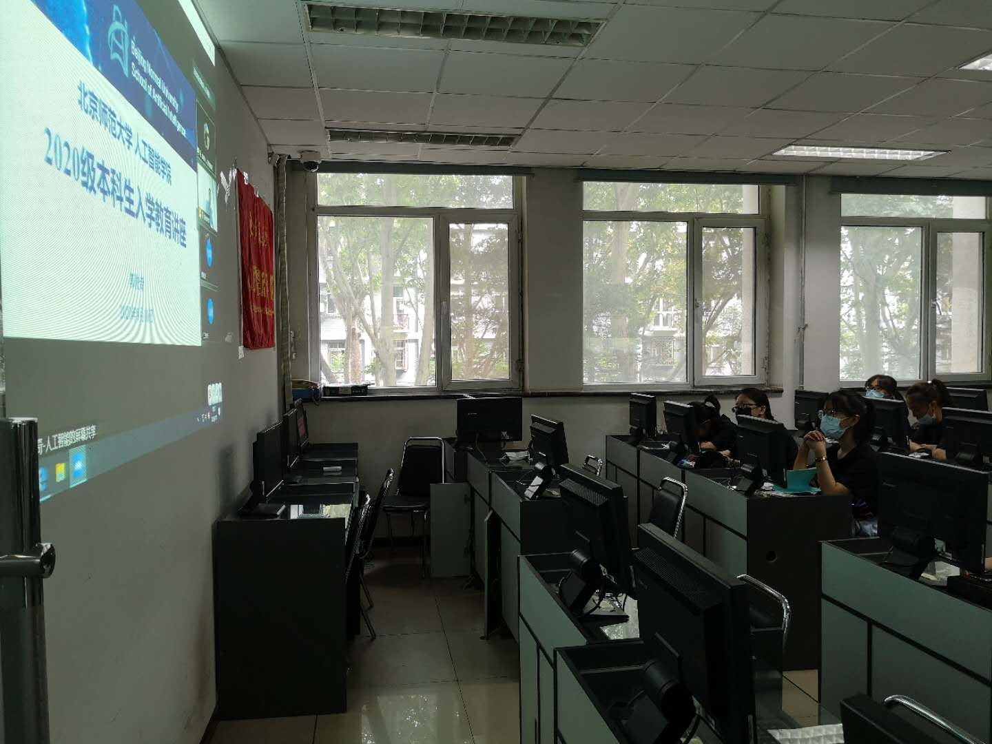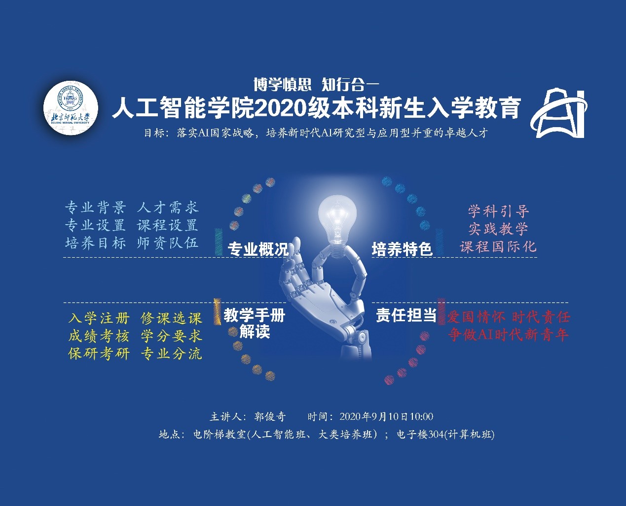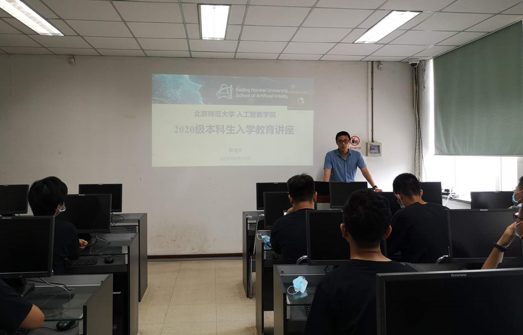 2020年9月10日,金风送爽,青青草视频 2020级本科生新生入学教育讲座在电子楼隆重举行。分管本科教学的副院长郭俊奇、本科教务秘书骆路青及学院2020级人工智能班、计算机班和大类培养班全体本科新生按时出席。