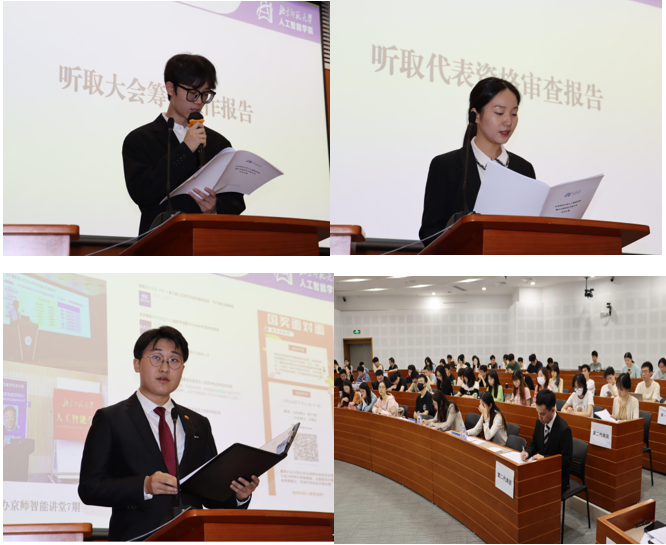 随后,与会代表听取了大会筹备工作报告、代表资格审查报告。青青草视频 第四届研究生会主席团成员王舒扬对上一年度研会工作进行了报告,从工作思路、组织建设、活动开展三方面做出总结,并对未来工作方向提出展望。与会代表审议通过了第四届研究生会工作报告。