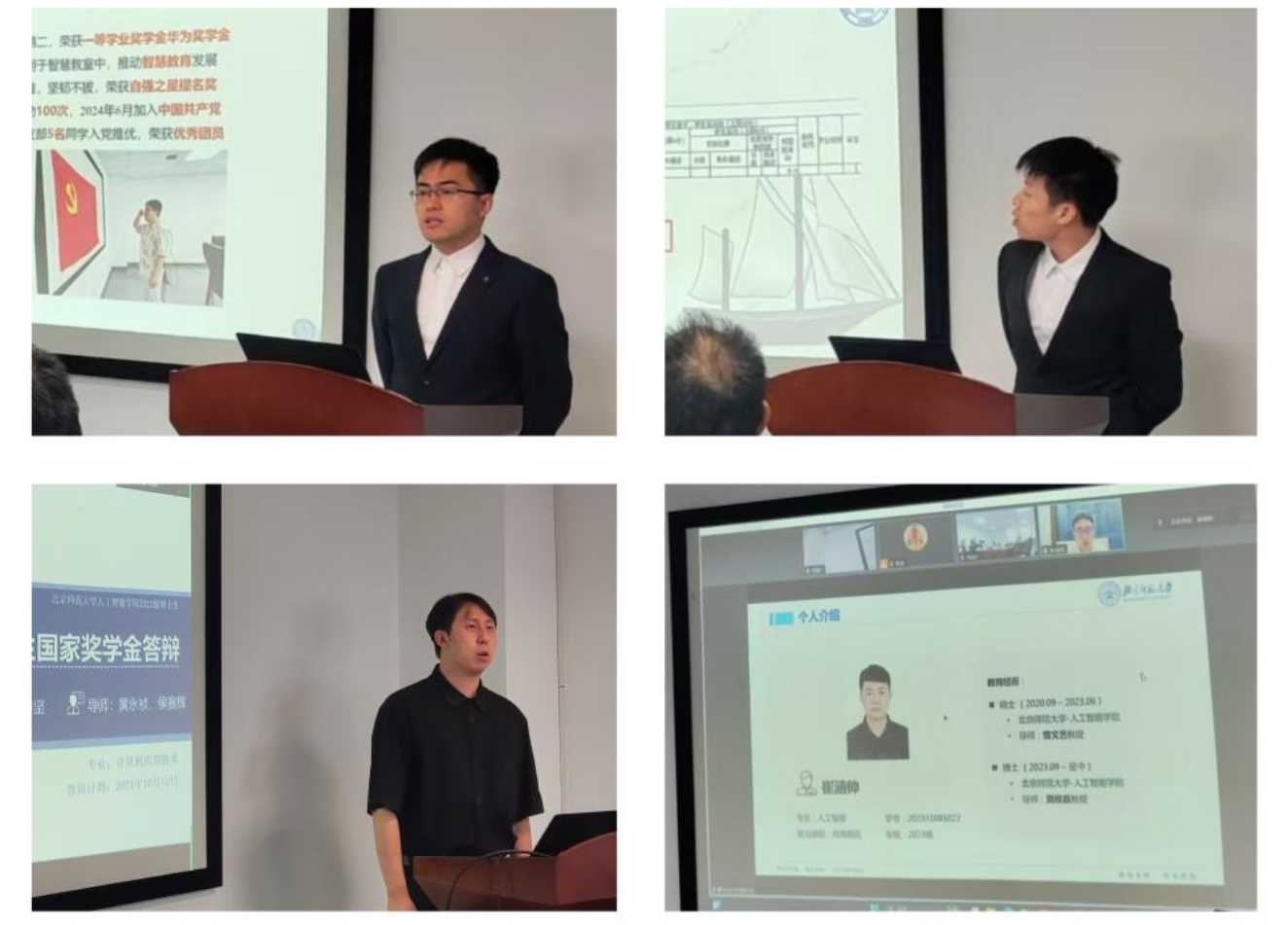 每位参评同学发言结束后,评审委员会成员对其进行提问,同学都给出了详尽且准确的回答,展现了良好的专业素养和表达能力。在13位候选人答辩结束后,评审委员会对同学们的答辩情况进行了总结和评价,肯定了每位同学先进的思想水平和优秀的科研能力,希望同学们可以互学互鉴、踏实科研,为人工智能领域发展做出贡献。