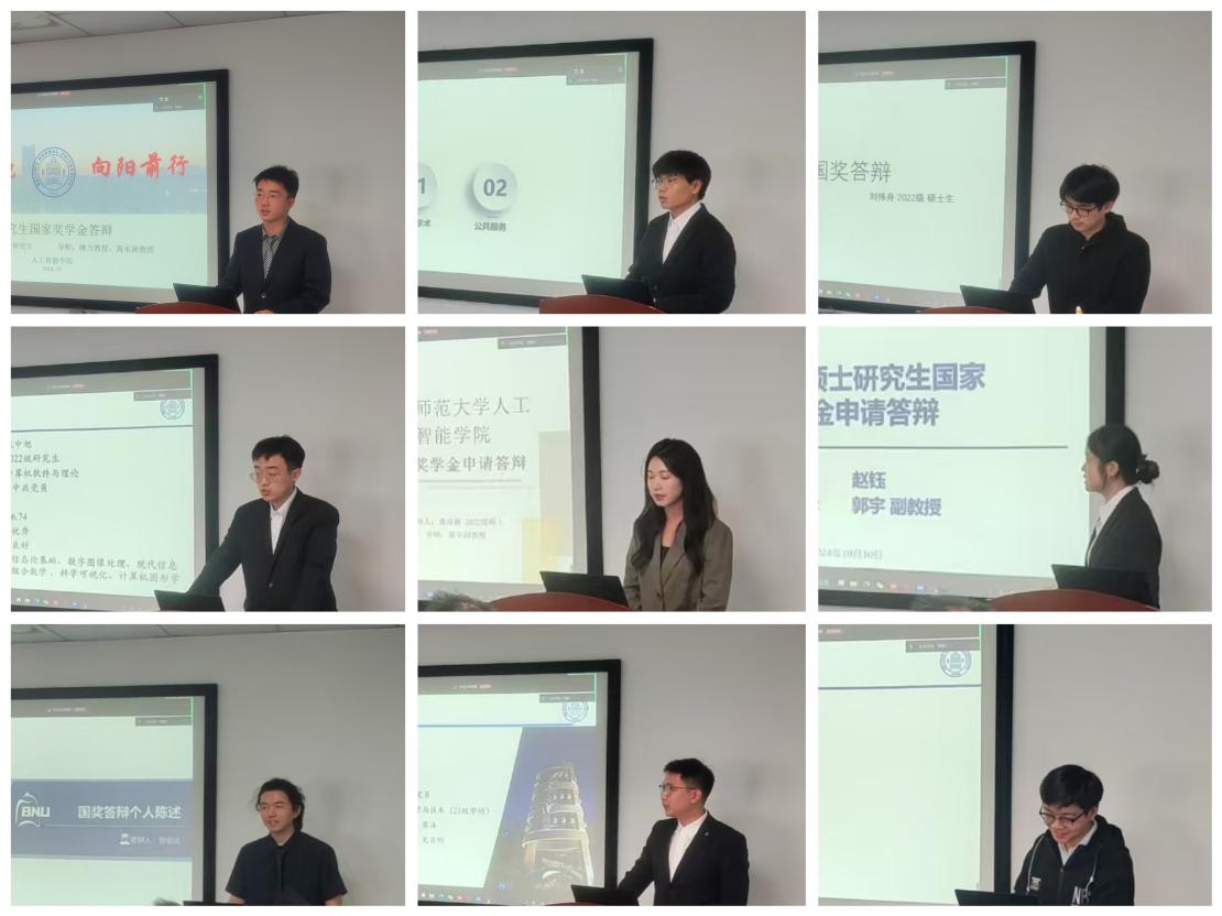 莅临答辩会的评审老师及学生代表有:学院党委书记杨学玉、副院长王川、副书记王学松、教授代表段福庆、张立保,以及学生代表魏宏宇。研究生国奖候选人共计13名,包含4名博士(1名珠海)、9名硕士。答辩会还吸引了多名同学现场观摩学习。