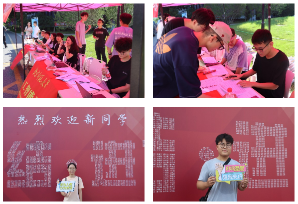 七点开始,新生和家长陆续到达,研究生会同学和新生志愿者们态度热情而又严谨,耐心细致地为学生办理电子注册、信息填报、物资发放、校园引领等工作,并为新生和家长拍摄纪念照片和视频,为同学们留下珍贵的纪念。