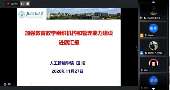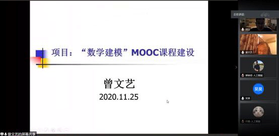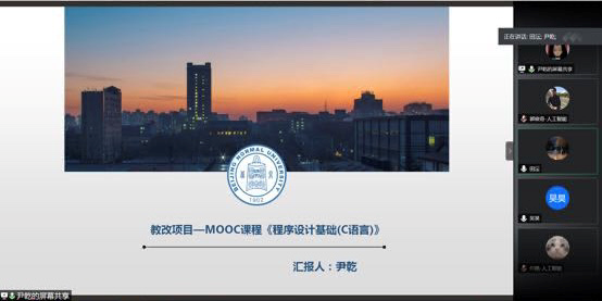 三、国家级一流课程申报与MOOC课程建设经验分享会——11月25日,青青草视频 国家级一流课程申报与MOOC课程建设经验分享会通过腾讯线上会议方式举行。人工智能系主任田沄主持了会议,获得“首批国家级线上一流本科课程”的《数据库系统原理》课程的任课教师——党德鹏教授,在会上做了经验分享。党老师从知识点的搭建、案例的设计以及习题集的开发等方面,阐述了如何打造MOOC课程的特色。此外,本年度正在进行MOOC课程开发与建设的三位老师也用自己的项目进行了交流与探讨。其中曾文艺老师介绍了“数学建模”MOOC课程的建设,尹乾老师介绍了“程序设计基础(C语言)”MOOC课程的建设,吴昊老师分享了深度学习”MOOC课程建设的经验与未来展望。