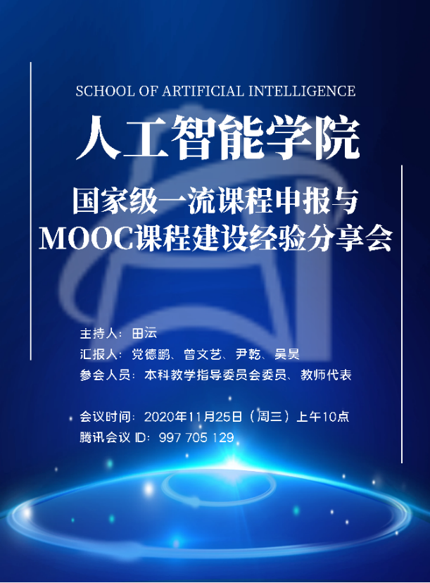 | 3 | 国家级一流课程申报与MOOC课程建设经验分享会 | 11月25日(周三)上午10点 | 主持人:田沄