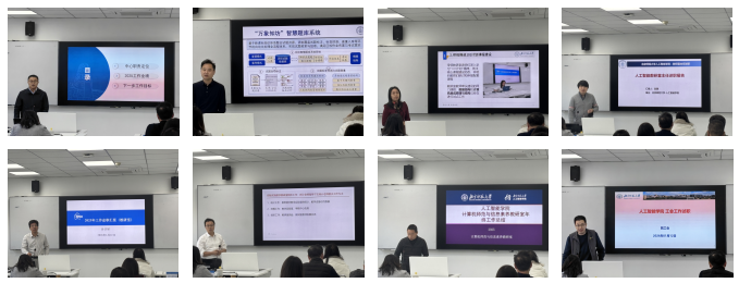 虚拟现实应用教育部工程研究中心主任郭建伟、智能技术与教育应用教育部研究中心主任黄华围绕中心年度工作目标完成情况、科研成果转化、团队建设等方面展开详细汇报,既展示了过去一年取得的成绩,也分析了存在的问题与不足。计算机科学与技术教研室主任尹乾、人工智能教研室主任白璐、计算机师范生与信息素养教研室主任张家才、实验实践教学教研室主任计卫星、实验实践教学教研室副主任魏云刚则聚焦教学创新、人才培养质量提升、专业课程建设等核心工作,分享了教研室在推动教育教学改革方面的实践与探索。工会主席田沄汇报了工会围绕学院中心工作,在维护教职工权益、丰富教职工文化生活等方面所做的工作及成效。
