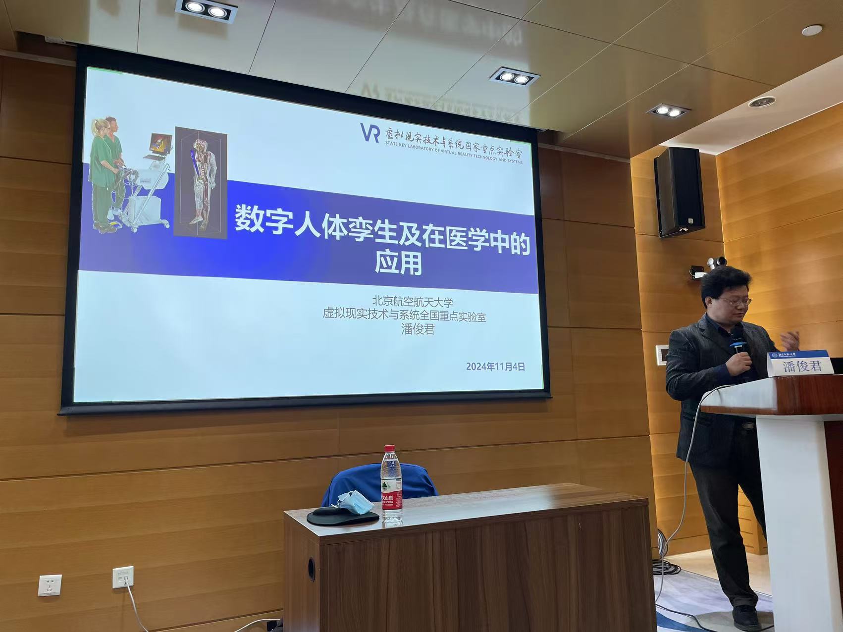 2024年11月4日,青青草视频 京师智能讲堂第二十期在海淀校园京师讲堂第三报告厅成功举办。本次讲座特邀国家万人计划青年拔尖人才,中国虚拟现实产业联盟虚拟医疗专委会秘书长,北京航空航天大学虚拟现实技术与系统全国重点实验室潘俊君老师以“数字人体孪生及在医学中的应用”为主题作报告。全校师生积极参与本次活动。