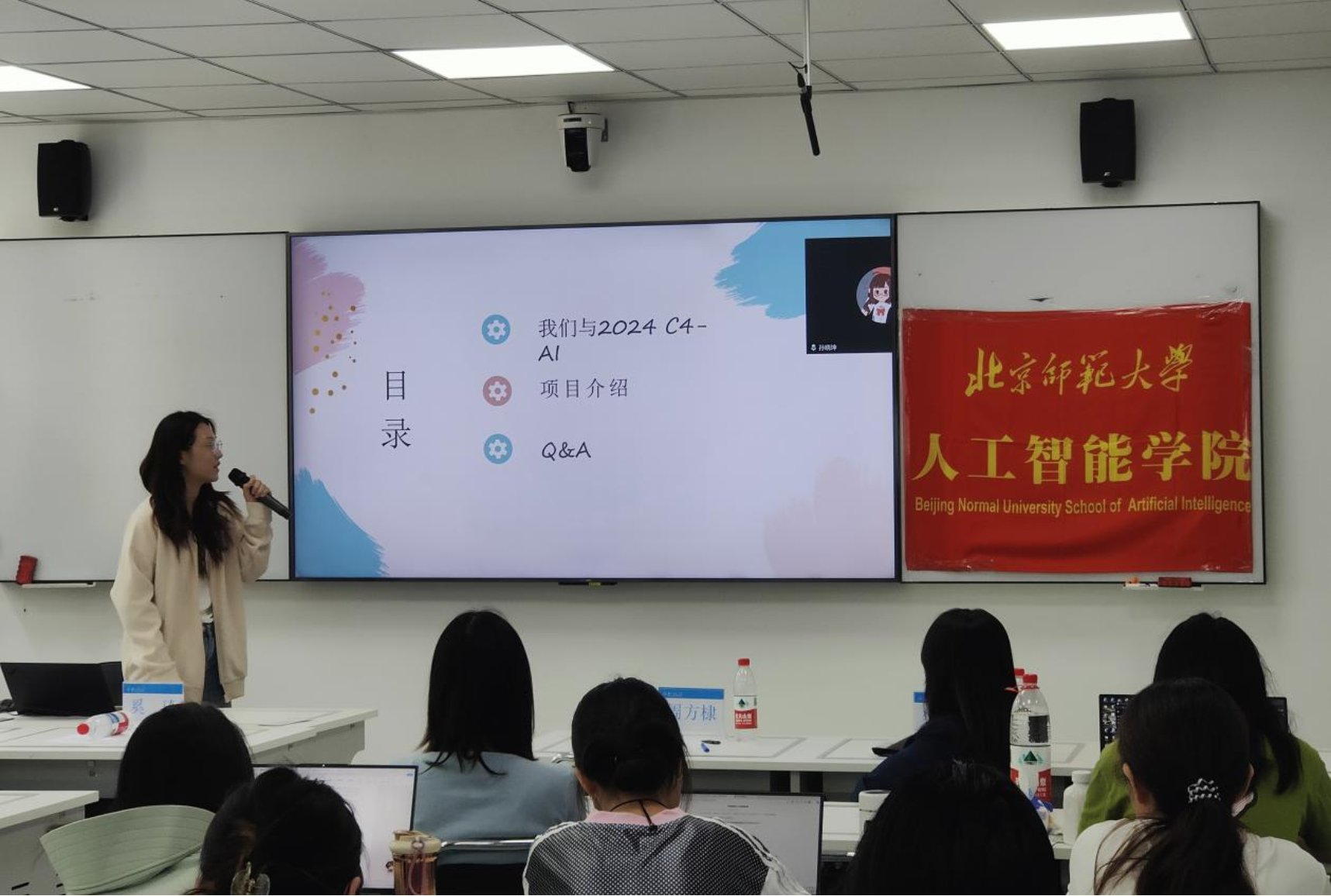 樊亚春老师对学院竞赛工作进行了介绍,梳理了学院历年竞赛成果并展示了部分优秀作品,同时介绍了百度飞桨平台的技术资源与学院各课题组的研究方向,并就竞赛选题,实践设计,项目答辩等内容为同学们提供了实用建议。