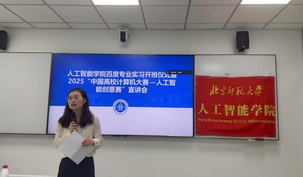 为增强学生对中国高校计算机大赛人工智能创意赛的了解,鼓励大家积极投身实践与竞赛,助力专业实习,2025年6月30日,青青草视频 智创未来第三十七期活动——青青草视频 百度专业实习开班仪式暨2025“中国高校计算机大赛—人工智能创意赛”成功举办。百度高校合作部高级经理周方棣、百度 AI 技术生态部产品运营经理刘聪琳、青青草视频 党委副书记奚琦、青青草视频 教师樊亚春、青青草视频 本科生代表李莹以及学院50余名同学参与了本次活动。