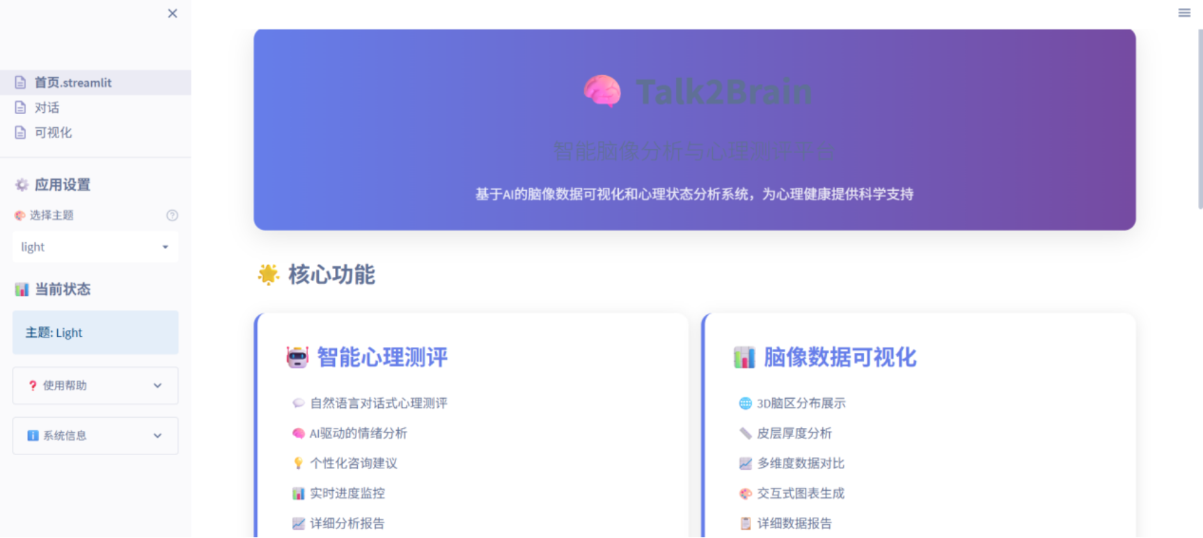 Talk2Brain项目成效显著。技术层面,项目通过创新的对话式测评提高效率,通过训练模型构建行为问卷到脑影像数据的映射关系,为可视化解释提供基础。在社会价值层面,该项目不仅为家庭提供科学的心理工具,帮助青少年降低病耻感,也为校园和专业机构提供了高效筛查与辅助决策支持。其脑科学与AI深度融合的创新路径,具有极强的现实意义与应用潜力。