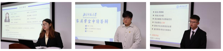 本次评审会首先由赵爽老师介绍本次答辩的流程以及评审规则,而后每位候选人依次进行个人陈述,全面展示了其在思想品德、学业学术、学生工作及社会贡献等多维度的优异表现。