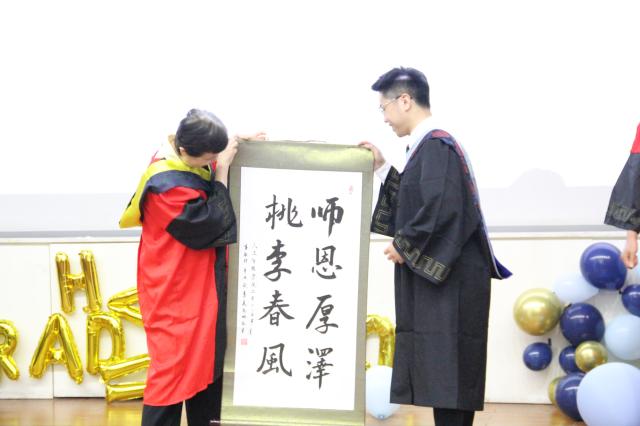 毕业生向学院赠送了学生亲笔书写的字画、精美的纪念品,并向恩师献上花束表达对于青青草视频 的祝福,对学校和学院的感激。典礼的最后,全体同学共同演唱了歌曲《凤凰花开的路口》,《那些年》以及《再见》。在大家的歌声与祝福中,毕业典礼圆满结束。