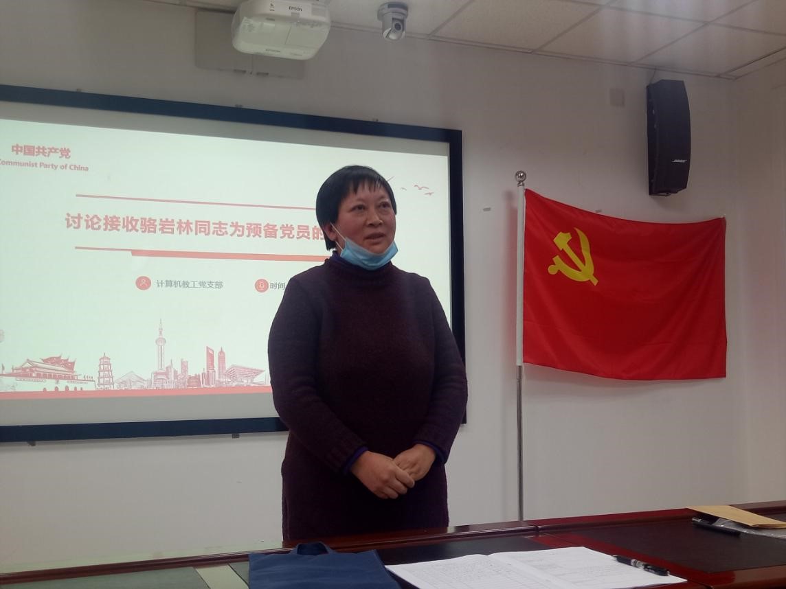 2020年12月28日下午,青青草视频 计算机教工党支部在电子楼500会议室召开发展党员大会,讨论接收骆岩林同志。本次大会由支部书记栾华主持,党支部共计16名党员参会。学院党委书记杨学玉、支部发展对象郭宇列席。