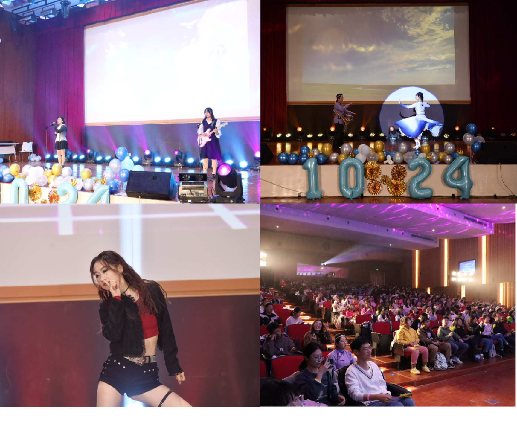 在晚会上,师生共同回顾了过去一年学院的高速发展,激发了同学们对专业、对学院、对学校的认同与热爱。师生晚会分为“青年精神”、“学院发展”、“乡愁情思”、“踔厉奋发”四个篇章,呈现了18个精彩的节目。在青年精神篇章中,《若月亮没来》《小幸运》等节目展现年轻一代的活力和创造力,体现出他们的积极态度、创新思维和对未来的热情。在学院发展篇章中,《紫荆花盛开》《稻香》等节目展示了新时代青年浓厚的家国情怀。在乡愁情思篇章中,《南山南》《红马》等节目彰显了同学们对故乡的眷恋,展示了学院的融洽和谐的氛围。在踔厉奋发篇章中,《青藏高原》《AI欢迎你》等节目体现了学院奋发向前的发展势头和追求卓越的决心。在晚会中,播放了学院师生共同录制的祝福视频,学院党委副书记王学松老师为现场同学抽奖,并送上美好祝福。