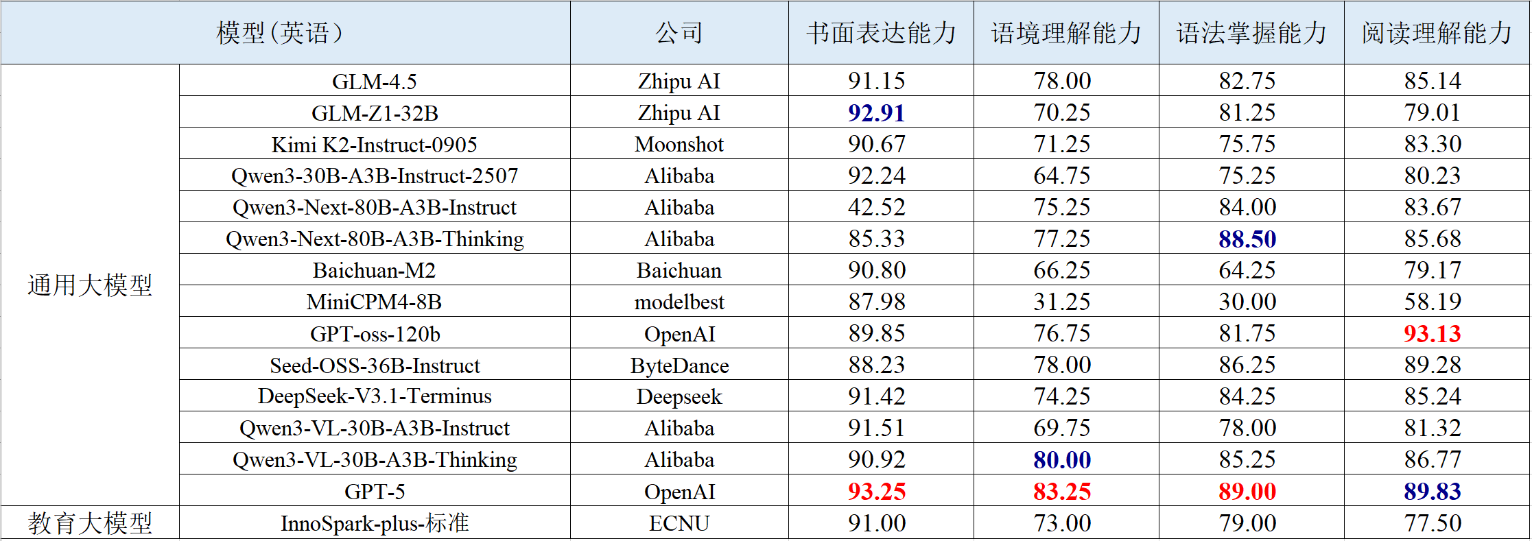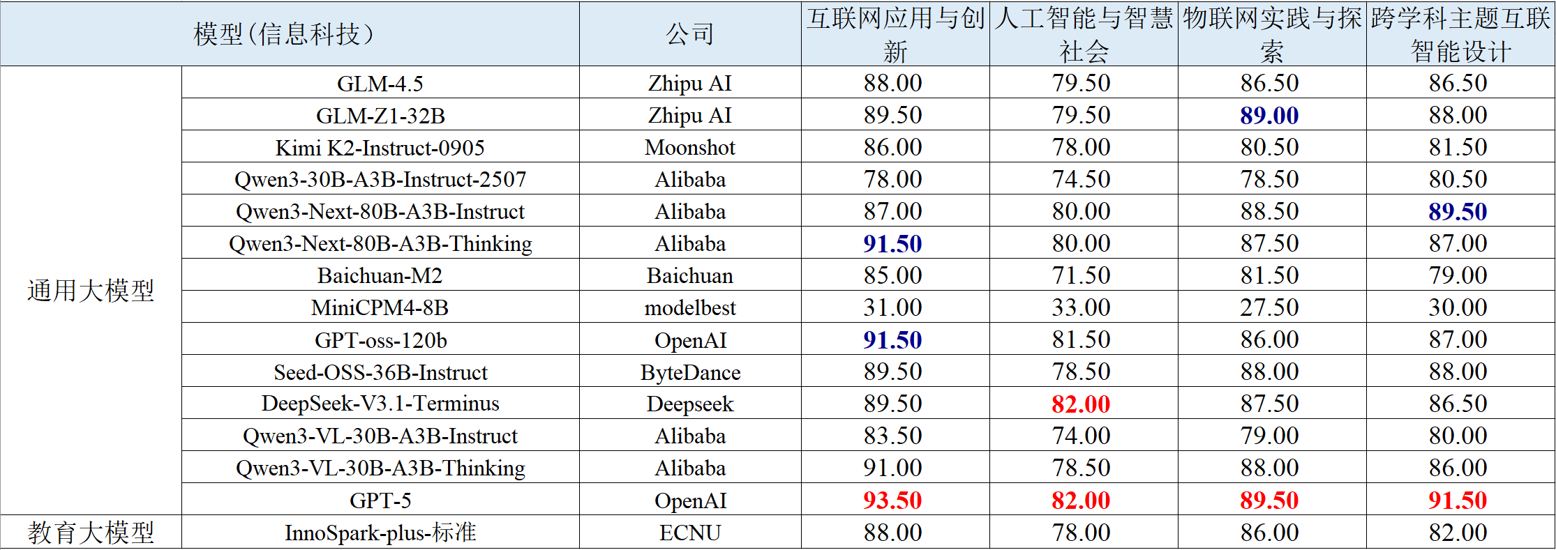 1.通用模型迭代较快,教育模型仍处积累阶段。相比于一期榜单,本期评测的模型中,多个主流模型系列已完成版本替换或迭代升级,如GPT、Qwen、GLM等均推出更先进模型,整体能力更强。相比之下,教育模型更新频次较低,部分首期模型因版本未变未再测评,展现出教育模型仍处技术积累阶段的特点。
