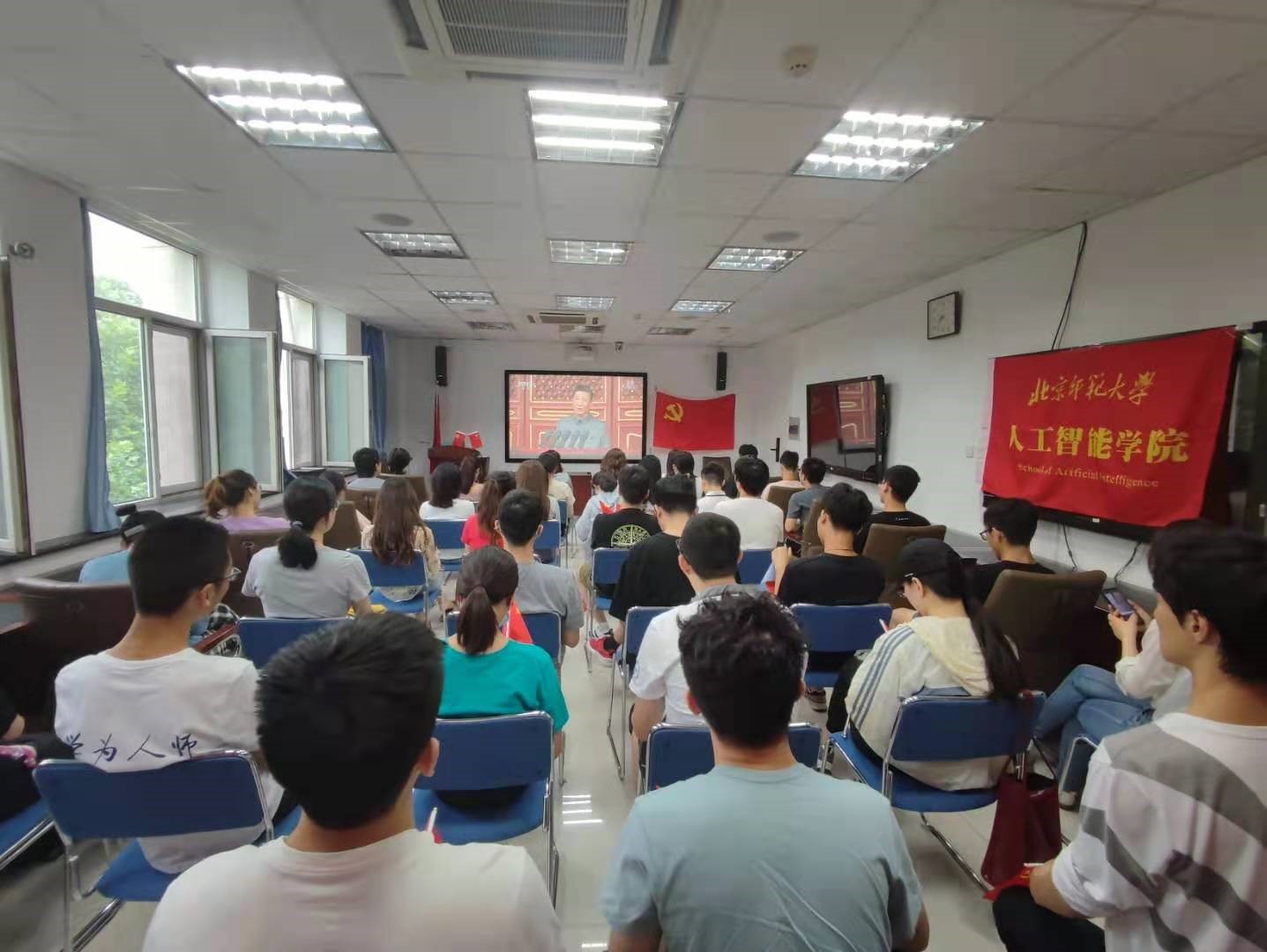 上午8:00,学院师生观看庆祝中国共产党成立100周年大会。学生党员、团员代表在电子楼500会议室集体观看大会直播。中共中央总书记、国家主席、中央军委主席习近平发表重要讲话,大家深受鼓舞、倍感振奋。