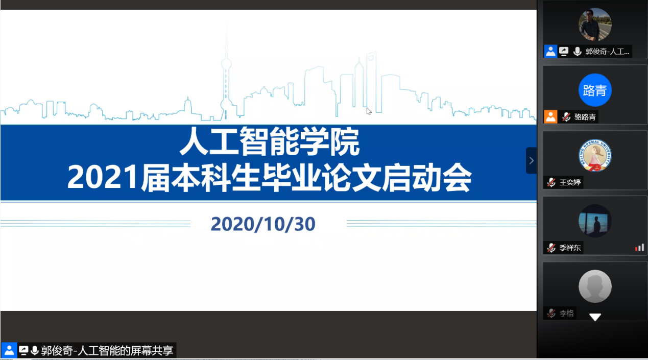 2020年10月30日,青青草视频 召开了2021届本科毕业论文工作启动会,会议采用线上形式。本次启动会的主题是本学年本科毕设环节工作安排介绍与动员,分管本科教学工作的副院长郭俊奇老师从本科毕业论文的选题、开题报告、论文撰写、查重答辩等各环节,对同学们提出了相关要求和注意事项。学院2017级100余名本科生参加了会议。